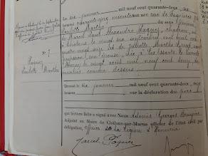 Naissance : 26 avril 1875 à Châlons-sur-Marne 51000 Décès : 16 septembre 1964 à Marne 51000 Châlons-sur-Marne,en son domicile 7 rue du Docteur Fragne Inhumation : 18 septembre 1964 à Marne 51000 Châlons-sur-Marne,Cimetière de l'Est