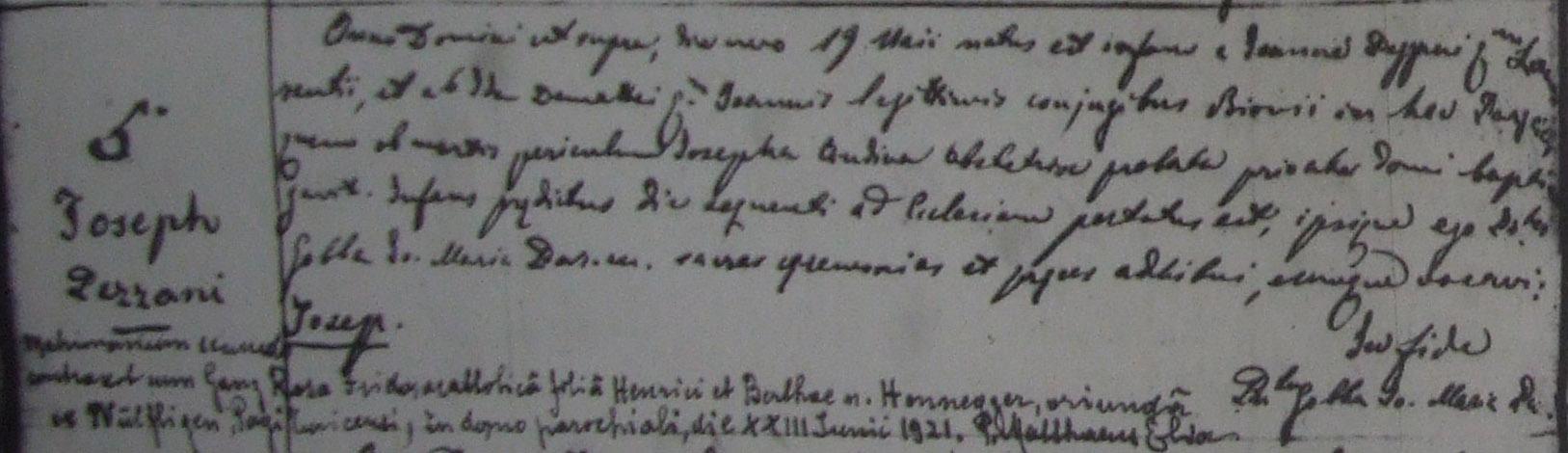 après de décès de Regina Antonietta, Giuseppe eut recours à une Suissesse- Allemande pour s'occuper de ses 4 enfants; au bout de quelques années il l'épousa et eurent 4 ou 5 enfants